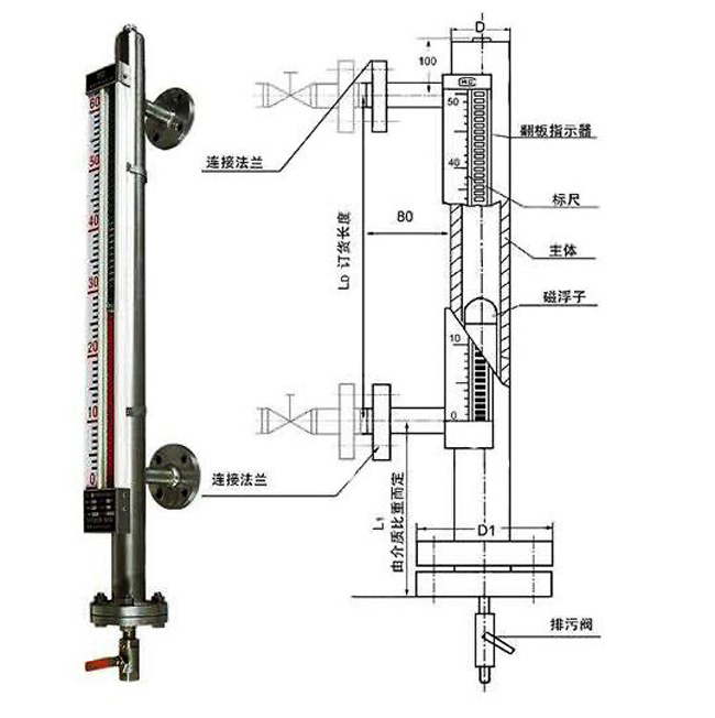 磁翻板液位計的顯著特點是液體介質(zhì)與指示器隔離,所以在任何情況下可靠、耐用,而且各種型號的液位計配上液位報警、控制開關,可實現(xiàn)液位或界位的上、下限越位報警,控制或連鎖;配上靜壓式液位變送器或干簧-電阻式液位變送器,可將液位,界位信號轉(zhuǎn)換成二線制4-20mADC標準信號,實現(xiàn)遠距離指示、檢測、記錄與控制。該系列磁翻板液位計可廣泛適用于電力、石油、化工冶金環(huán)保、船舶、建筑、食品等各行業(yè)過程中的液位測量與控制。